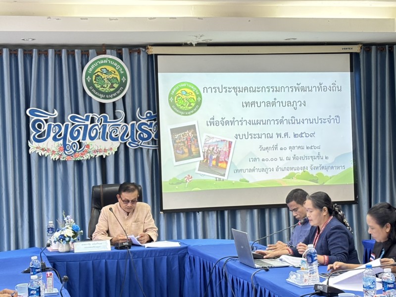วันที่ 10 ตุลาคม 2568 เทศบาลตำบลภูวง นำโดยนายกเทศมนตรีตำบลภูวง เป็นประธานในการประชุมคณะกรรมการพัฒนาท้องถิ่นเทศบาล ตำบลภูวง เพื่อจัดทำร่างแผนการดำเนินงานประจำปี พ.ศ. 2569 ณ ห้องประชุมเทศบาลตำบลภูวง เพื่อร่วมกันพิจารณาแนวทางการดำเนินงานตามภารกิจของเทศบาลในด้านต่าง ๆ ทั้งด้านบริหารงานทั่วไป การพัฒนาท้องถิ่น การบริการประชาชน และการบริหารงบประมาณให้เป็นไปอย่างมีประสิทธิภาพและเกิดประโยชน์สูงสุดต่อประชาชนในพื้นที่
