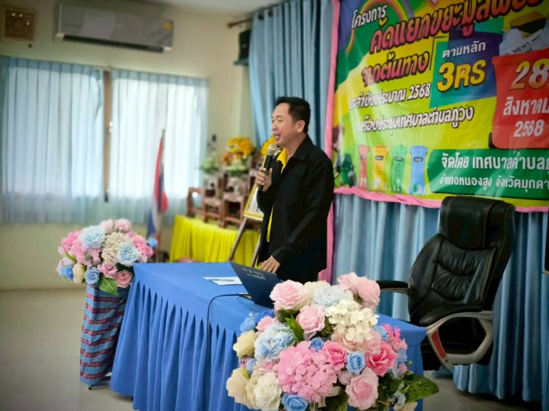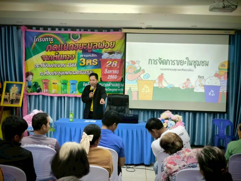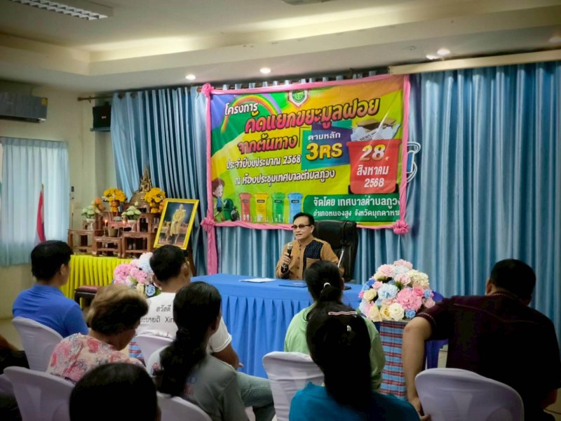 วันพุธที่ 27 สิงหาคม 2568 เทศบาลตำบลภูวง จัดโครงการคัดแยกขยะมูลฝอยจากต้นทางตามหลัก 3RS ประจำปีงบประมาณ 2568 โดยมี นายบรรดิฐ แก้วศรีนวม นายกเทศมนตรีตำบลภูวง เป็นประธานเปิดโครงการ พร้อมด้วย คณะผู้บริหาร หัวหน้าส่วนราชการ หัวหน้าฝ่าย พนักงานเทศบาลตำบลภูวง ร่วมเป็นเกียรติในงานครั้งนี้