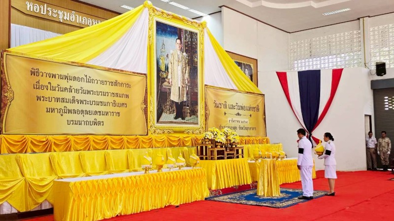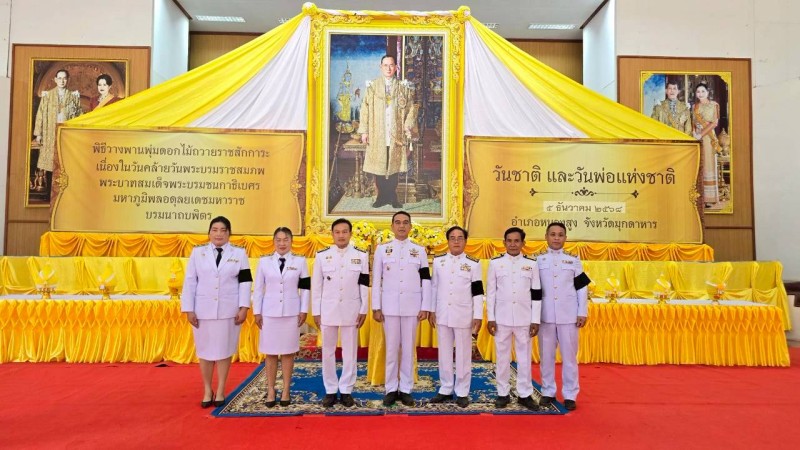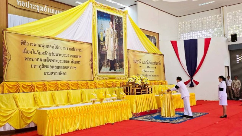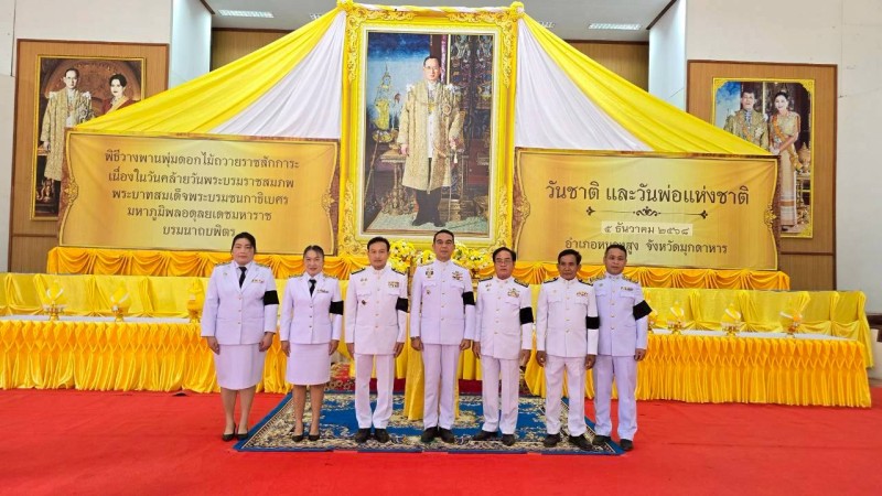 วันที่ 5 ธันวาคม 2568 เวลา 09.00 น. นายบรรดิฐ แก้วศรีนวม นายกเทศมนตรีตำบลภูวง นำข้าราชการ เจ้าหน้าที่ ร่วมพิธีวางพานพุ่มดอกไม้ถวายราชสักการะเนื่องในวันคล้ายวันบรมราชสมภพ พระบาทสมเด็จพระบรมชนกาธิเบศร มหาภูมิพลอดุลยเดชมหาราช บรมนาถบพิตร วันชาติ และวันพ่อแห่งชาติ 5 ธันวาคม 2568 อำเภอหนองสูง ณ หอประชุมอำเภอหนองสูง