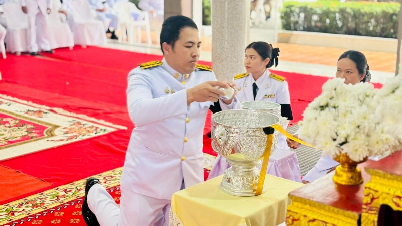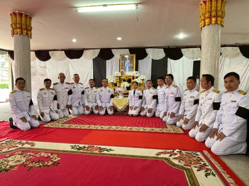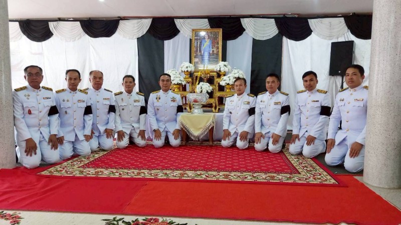 นายบรรดิฐ แก้วศรีนวม นายกเทศมนตรีตำบลภูวง ร่วมพิธีสรงน้ำพระบรมศพ และลงนามแสดงความไว้อาลัยเบื้องหน้าพระฉายาลักษณ์ สมเด็จพระนางเจ้าสิริกิต์ พระบรมราชินีนาถ พระบรมราชชนนีพันปีหลวง ณ วัดไตรภูมิ ตำบลหนองสูงเหนือ อำเภอหนองสูง
