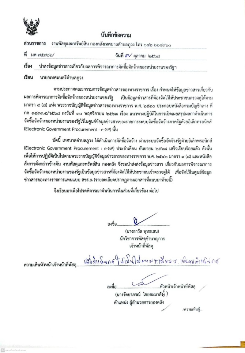 นำส่งข้อมูลข่าวสารเกี่ยวกับผลการพิจารณาการจัดซื้อจัดจ้างของหน่วยงานของรัฐ ประจำเดือน กันยายน 2568