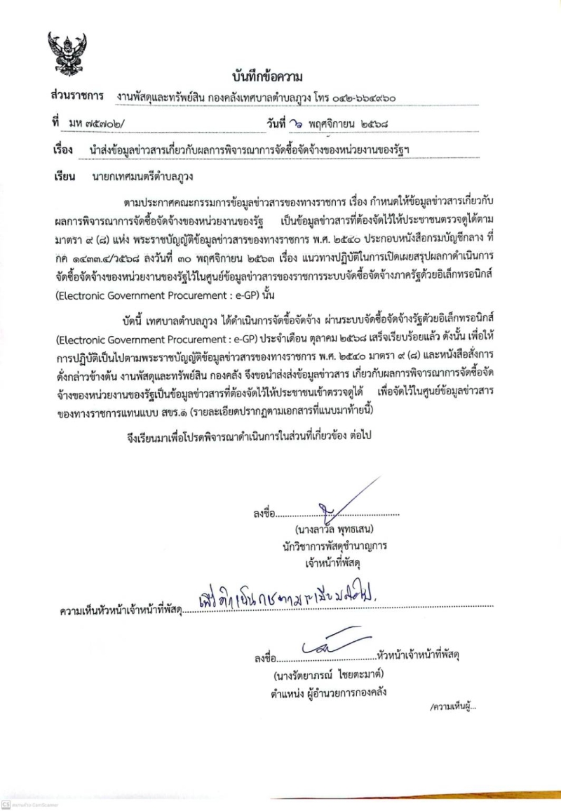 นำส่งข้อมูลข่าวสารเกี่ยวกับผลการพิจารณาการจัดซื้อจัดจ้างของหน่วยงานของรัฐ ประจำเดือน ตุลาคม 2568