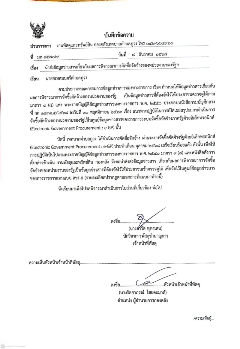 นำส่งข้อมูลข่าวสารเกี่ยวกับผลการพิจารณาการจัดซื้อจัดจ้างของหน่วยงานของรัฐ ประจำเดือน พฤศจิกายน 2568