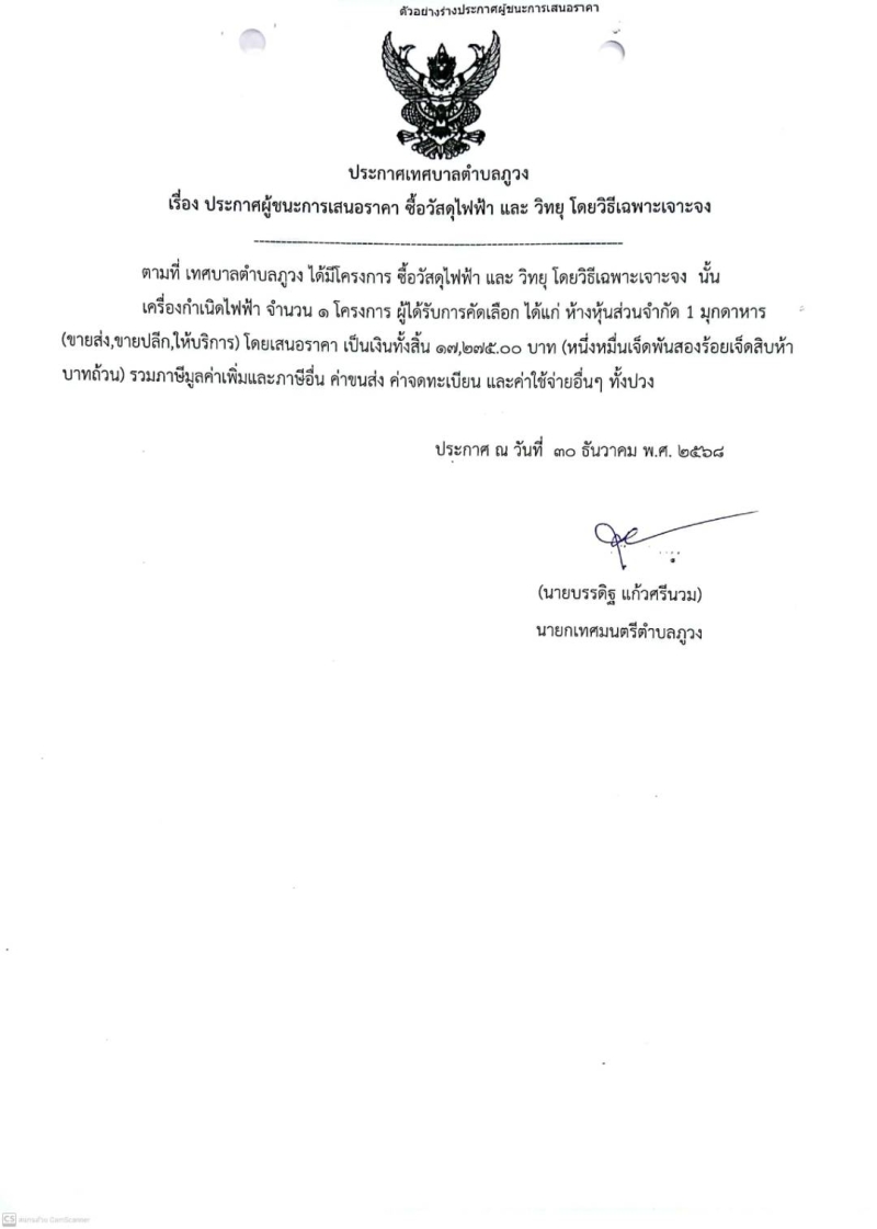 ประกาศผู้ชนะการเสนอราคา ซื้อวัสดุไฟฟ้าและวิทยุ