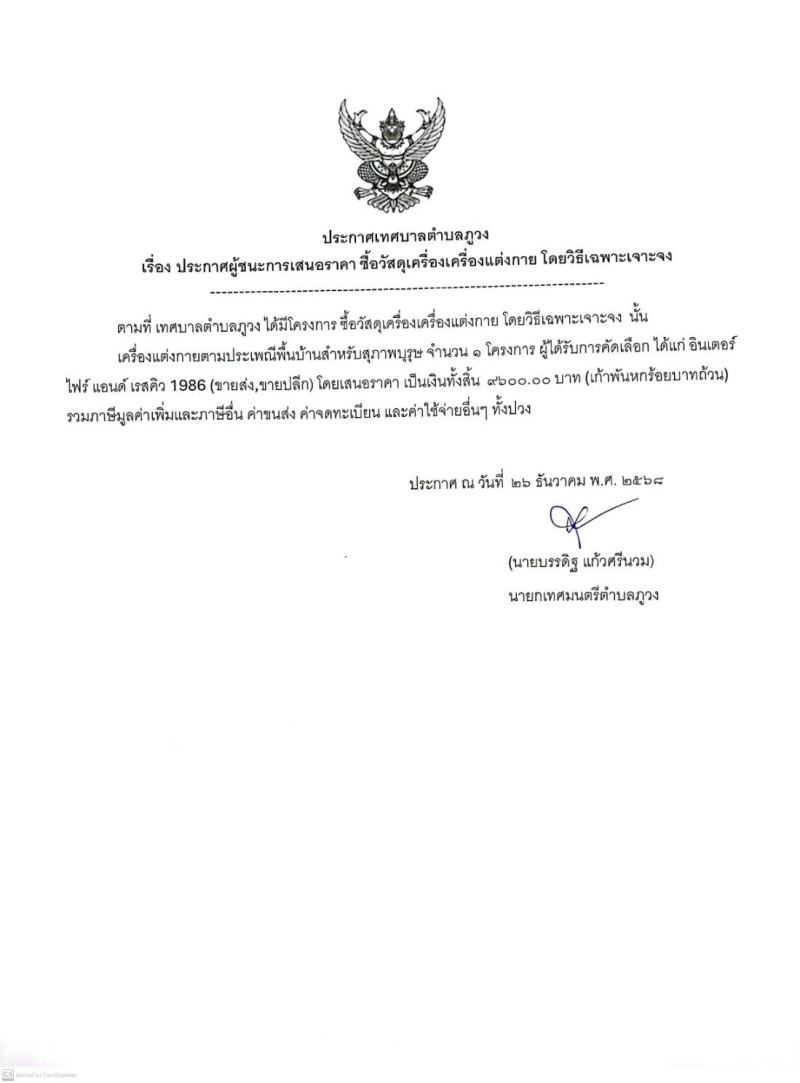 หัวข้อ :: ประกาศผู้ชนะการเสนอราคา ซื้อวัสดุเครื่องแต่งกาย